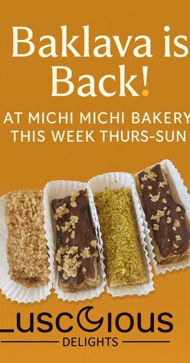 We're excited to partner with the Michi Michi bakery collective! Our vegan baklava will be featured at their renowned shop from August 14-17. Please stop by and enjoy a treat!
